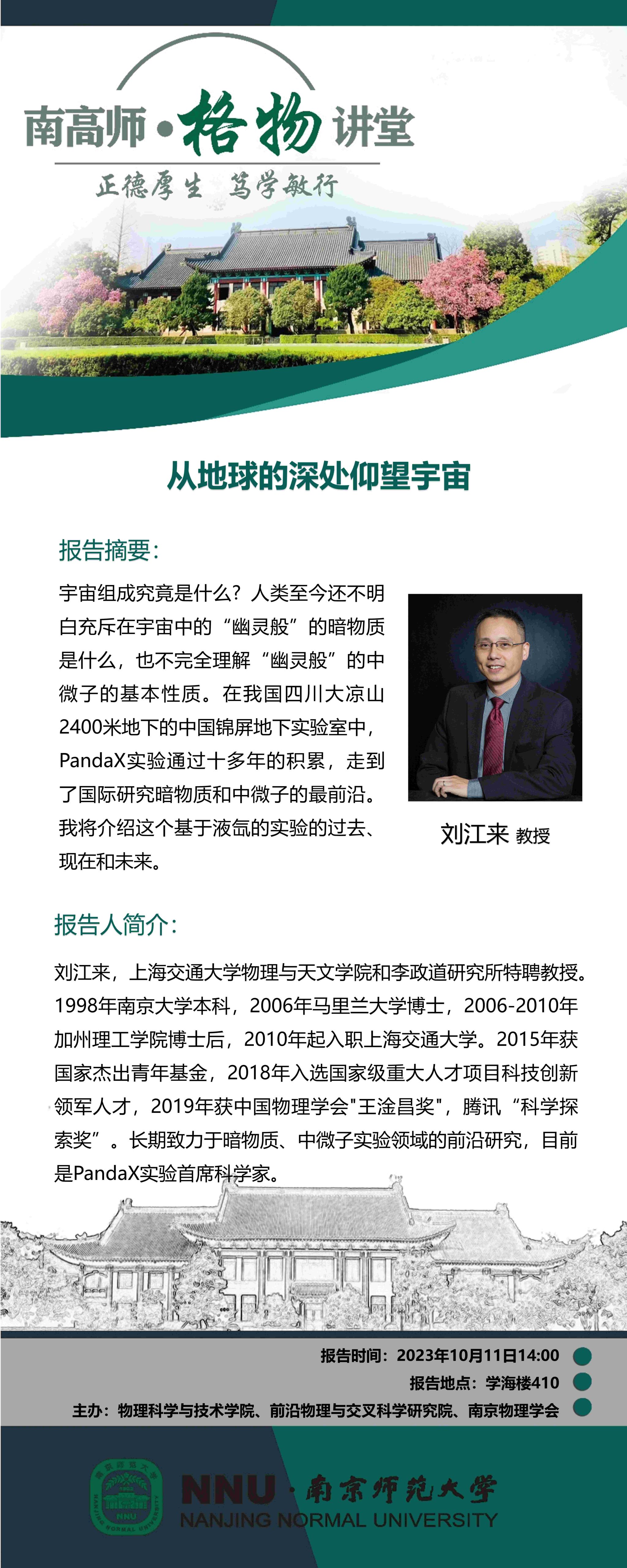 【学术预告】“南高师·格物讲堂” 从地球的深处仰望宇宙--刘江来教授