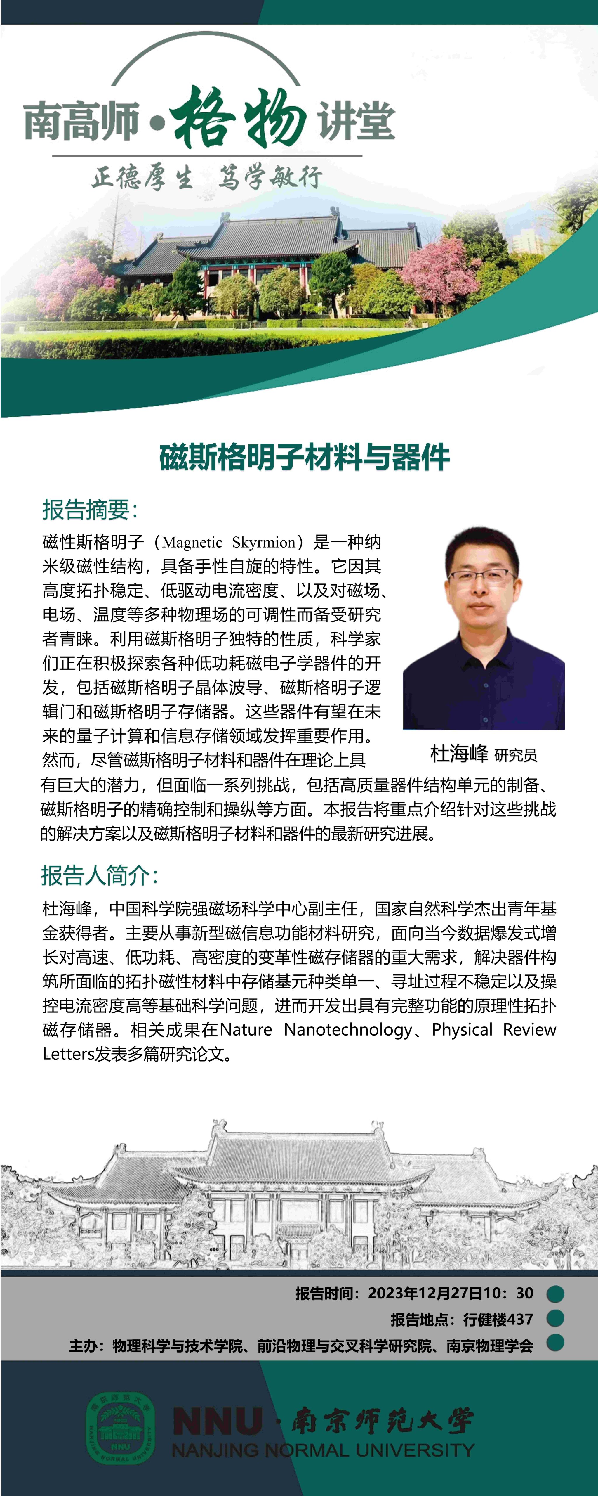 【学术预告】“南高师·格物讲堂”磁斯格明子材料与器件--杜海峰研究员