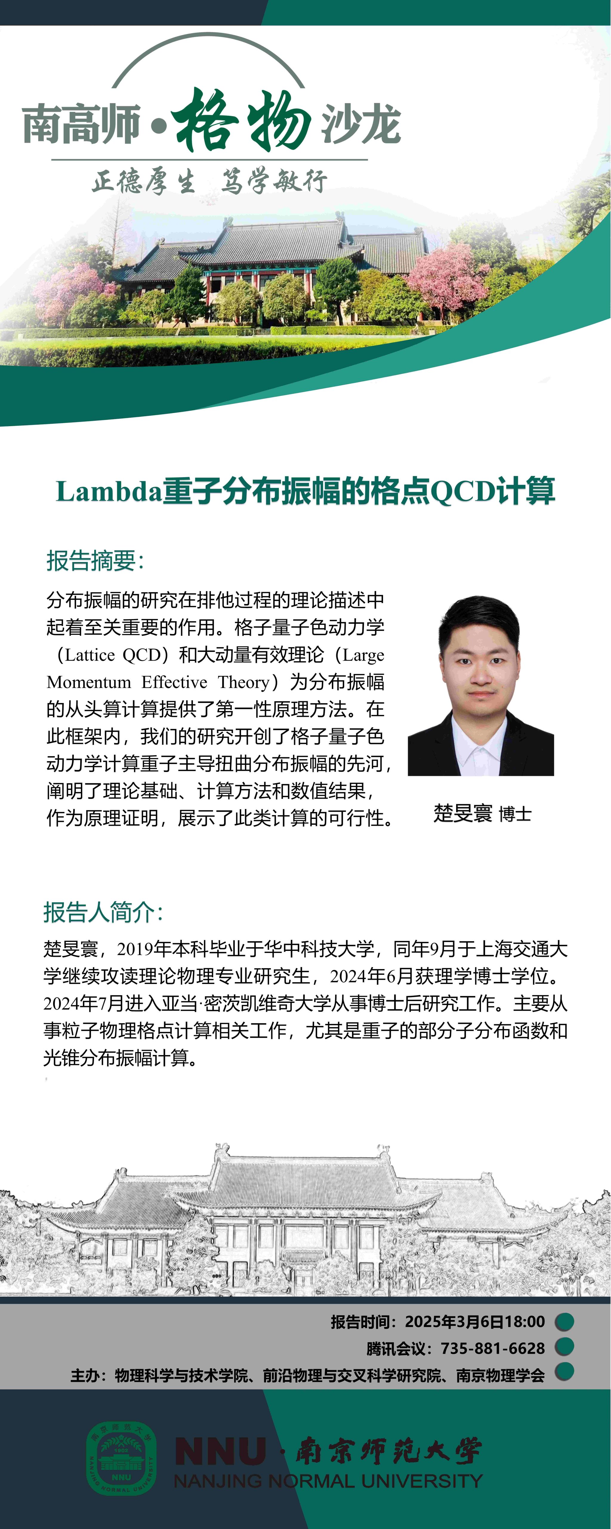 下一条:【学术预告】“南高师·格物讲堂” Cosmoparticle physics of Dark Universe--Prof. Khlopov