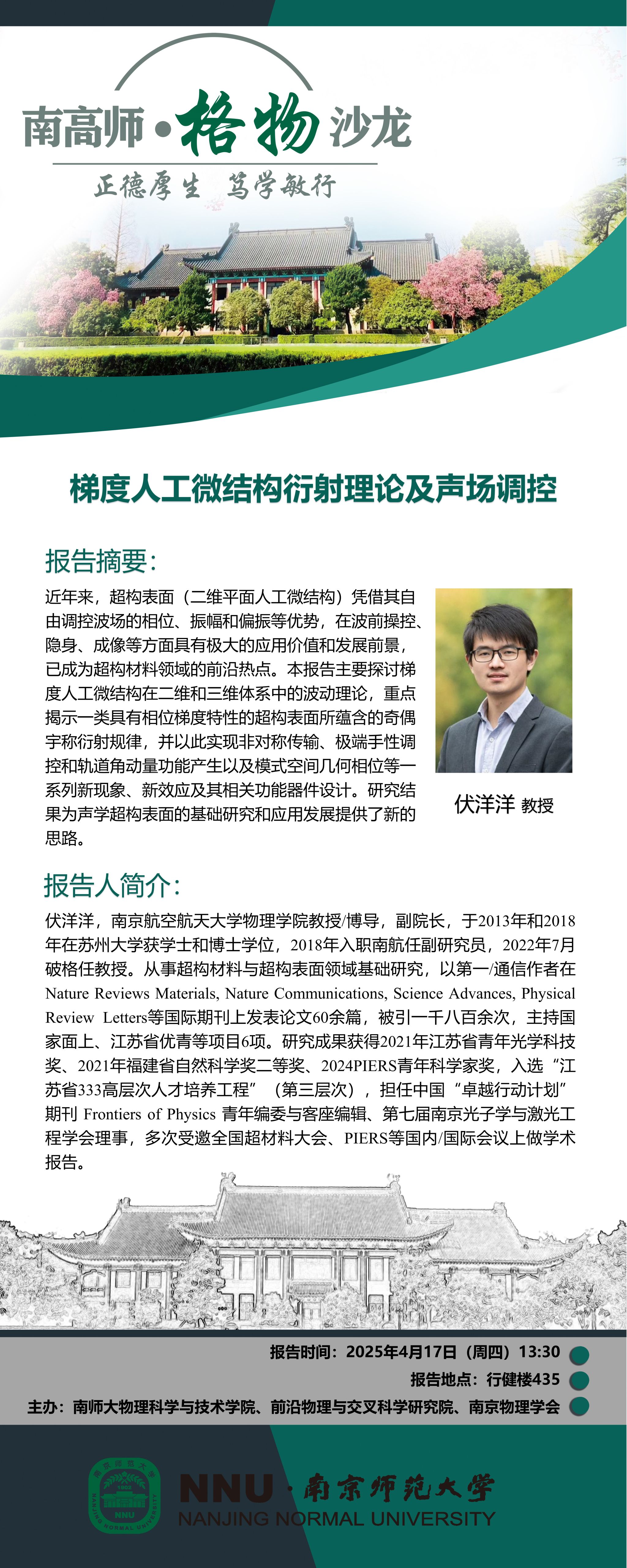 下一条:【学术预告】“南高师·格物沙龙” 高纯锗反应堆中微子相干散射实验--杨丽桃助理研究员
