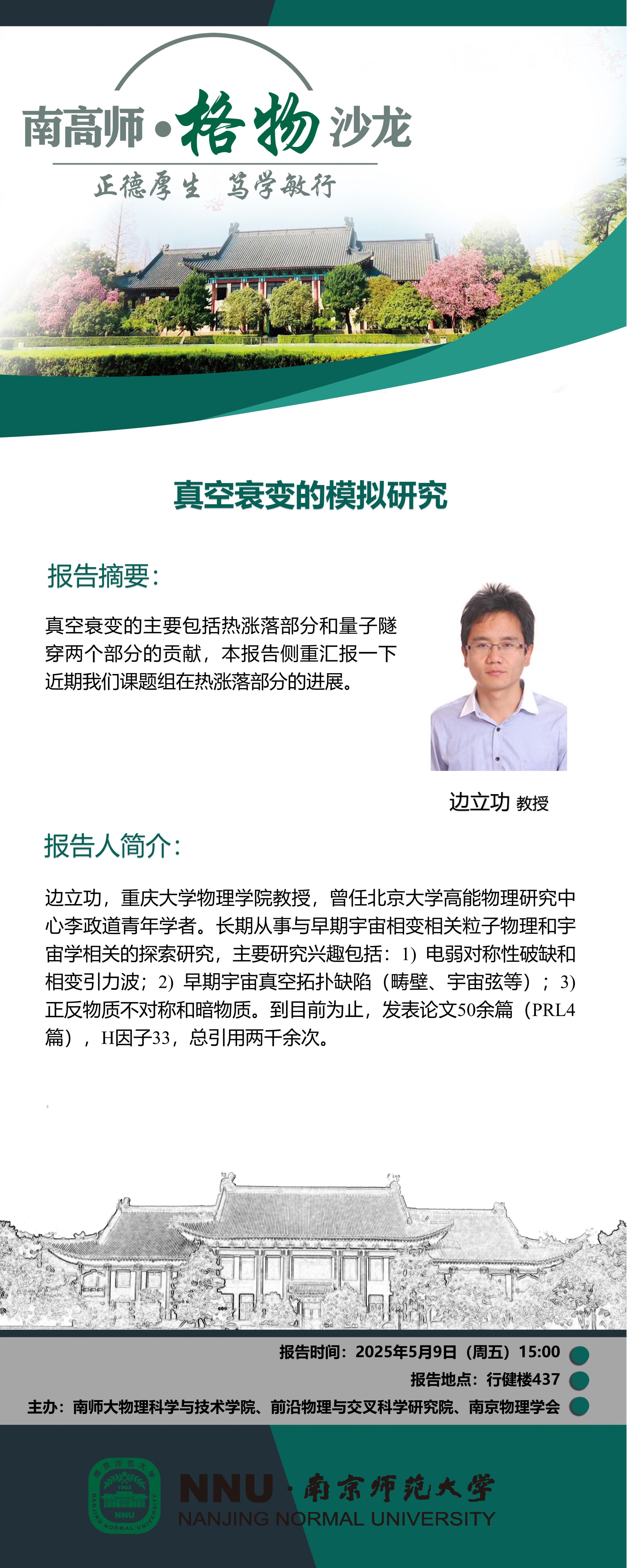 下一条:【学术预告】“南高师·格物沙龙” 快速射电暴中的磁等离子体爆发--李晔副研究员