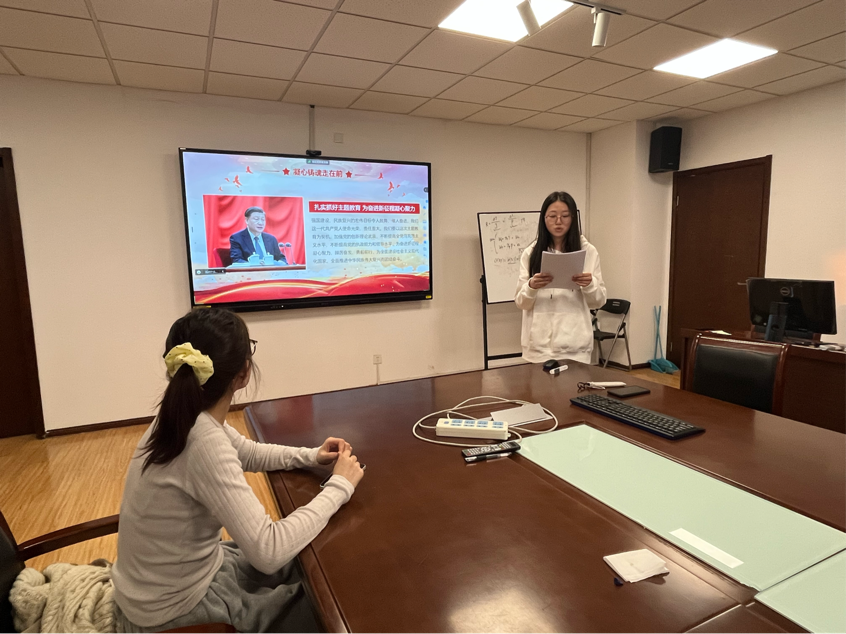 研究生思行党支部举行四月党日活动,活动主题是“学习贯彻习近平新时代中国特色社会主义思想主题教育工作会议上的重要讲话精神”。支部学生书记王潇雨主持活动,王欣宇为主讲人,与会的同志还有思行支部全体党员。