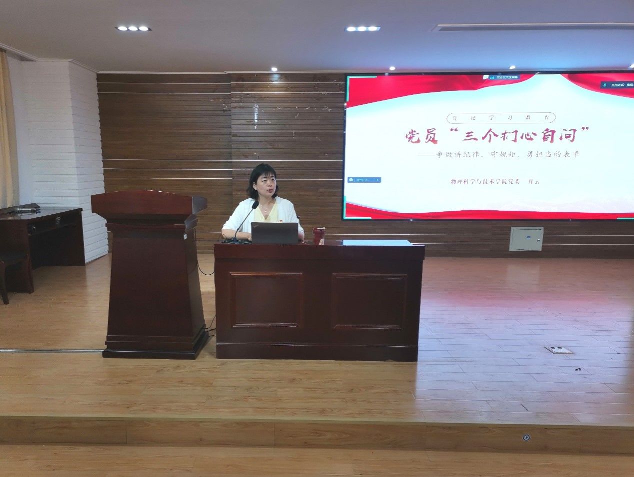在行健楼435会议室隆重召开了一场党纪学习教育专题党课。此次党课旨在深化全体教师党员对党规党纪的认识,强化党性修养,激发党员教师的担当精神。学院党委书记开云同志以“党员‘三个扪心自问’——争做讲党纪、守规矩、勇担当的表率”为主题,为全体党员上了一堂生动的党课。
