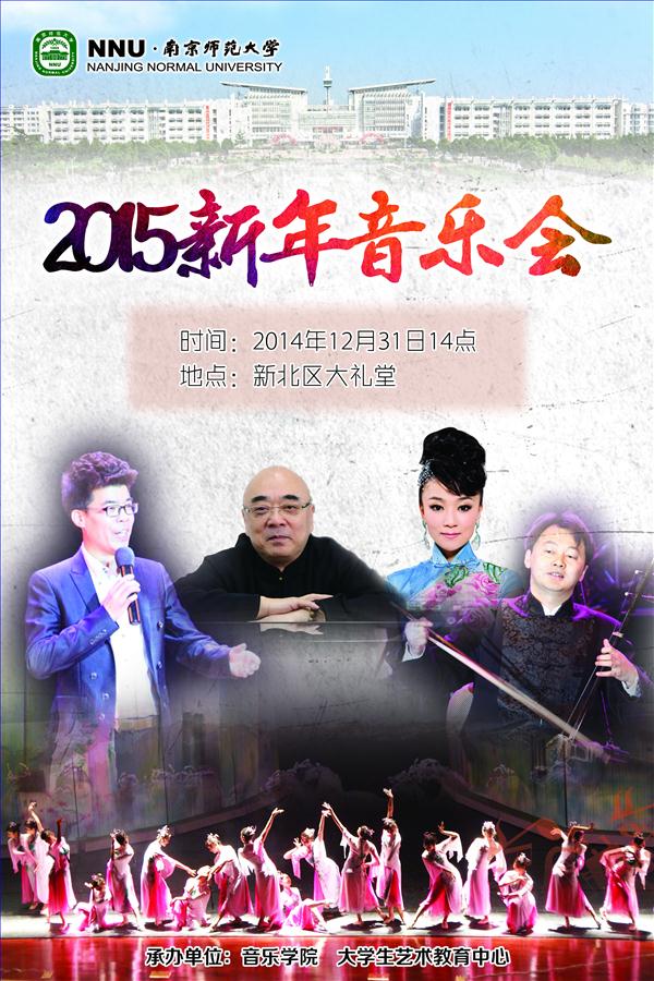 “南京师范大学2015年新年音乐会”计划于12月31日下午14:00在新北区大礼堂举行(13:45之前进场完毕),请31日下午没有课并有意向去听音乐会的老师于今天下午16:30之前,在下面的报名系统中报名, 新年音乐会节目精彩纷呈(详见海报),欢迎大家!