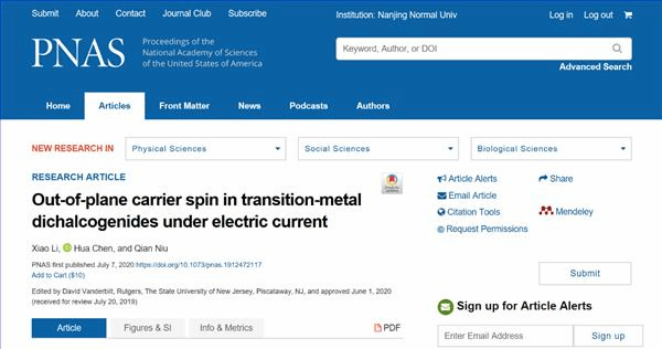 李晓教授在电流导致的自旋极化领域取得重要进展。相关结果以“Out-of-plane carrier spin in transition-metal dichalcogenides under electric current”为题发表在美国科学院院刊(PNAS)。李晓教授为该论文的第一作者,他与美国科罗拉多州立大学陈铧教授为论文的共同通讯作者。美国德克萨斯大学奥斯汀分校牛谦教授为论文的共同作者。
