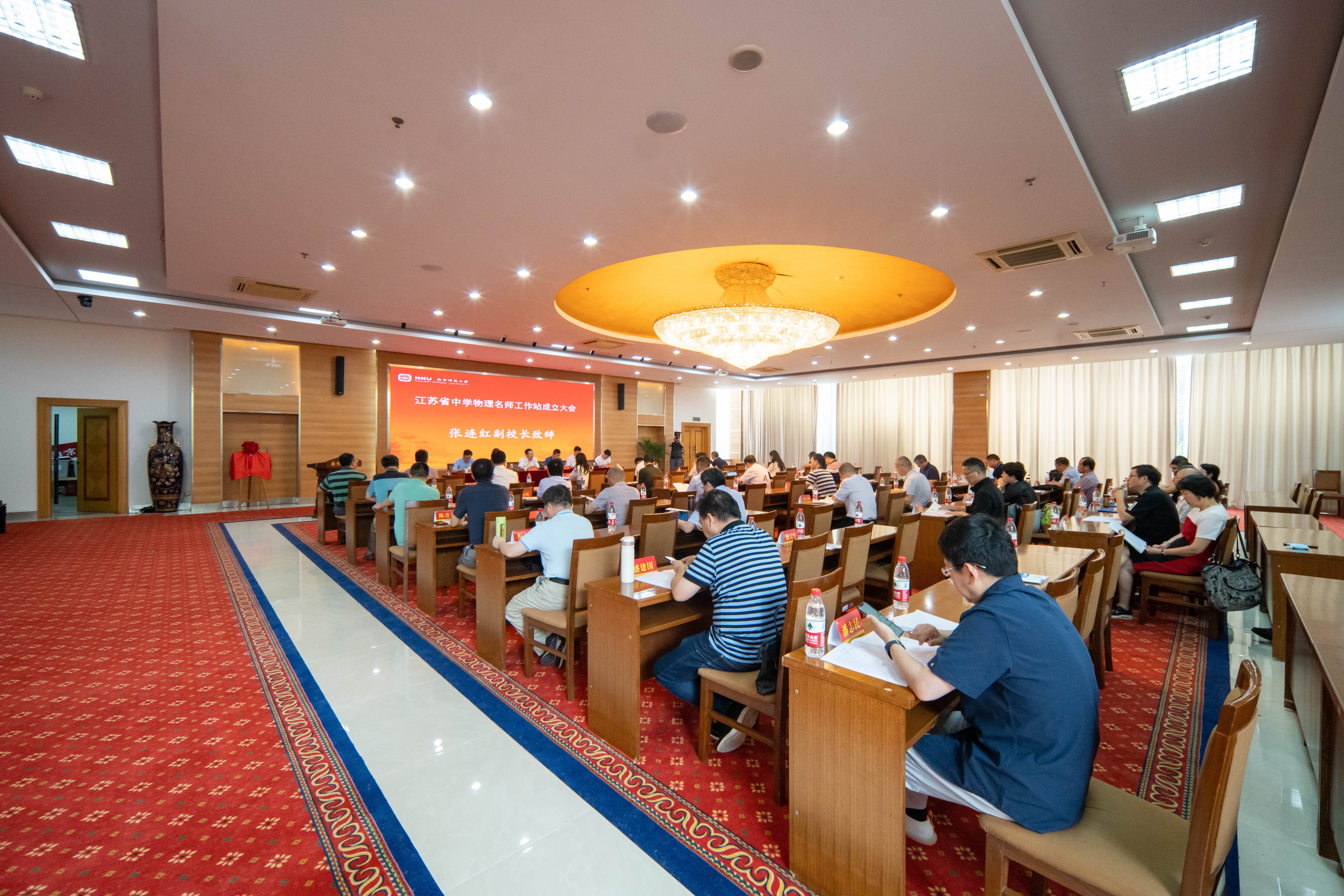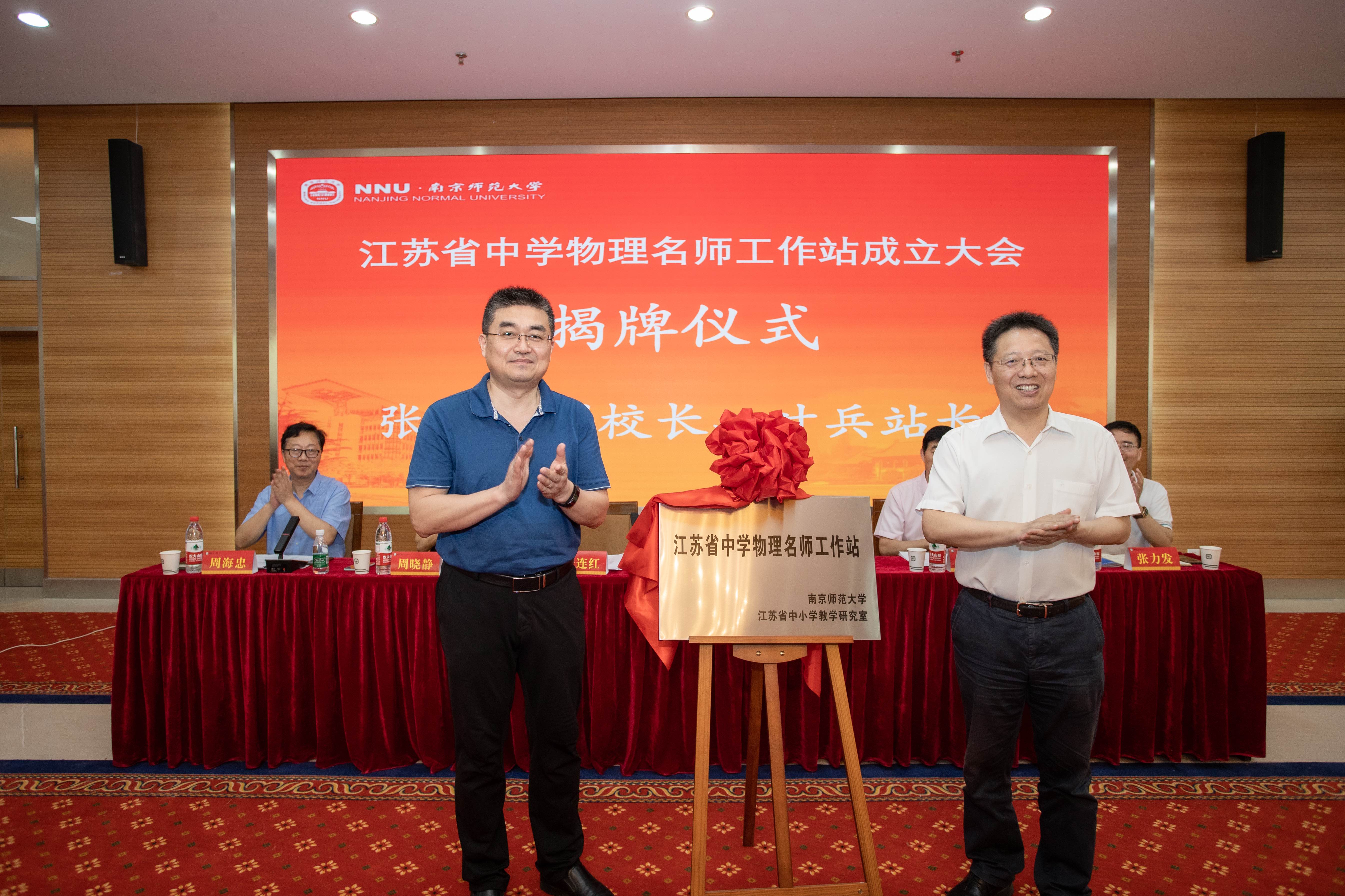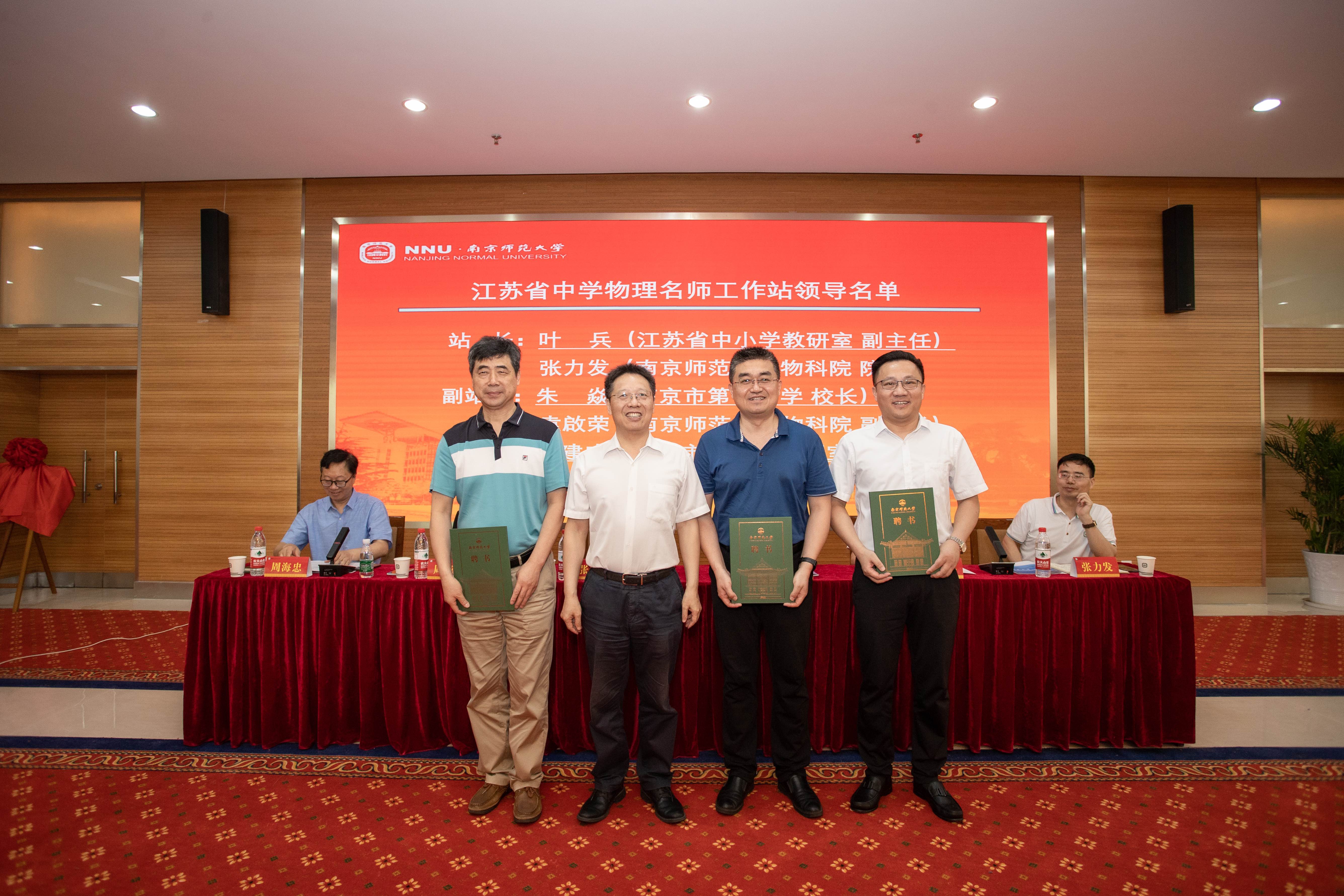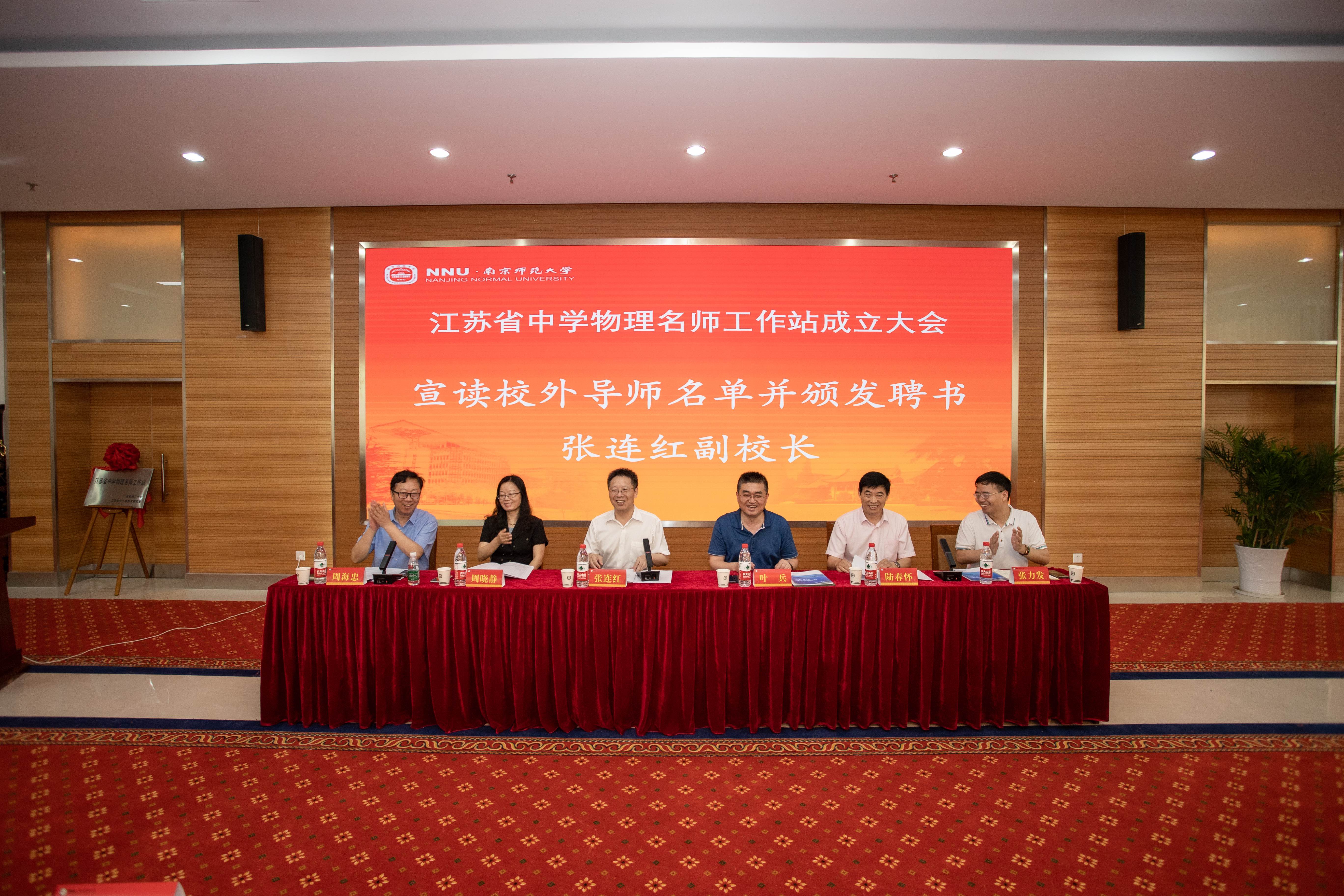 党委书记周海忠任秘书长。张连红副校长与叶兵站长为江苏省中学物理名师工作站揭牌,并为各位名师颁布聘书。