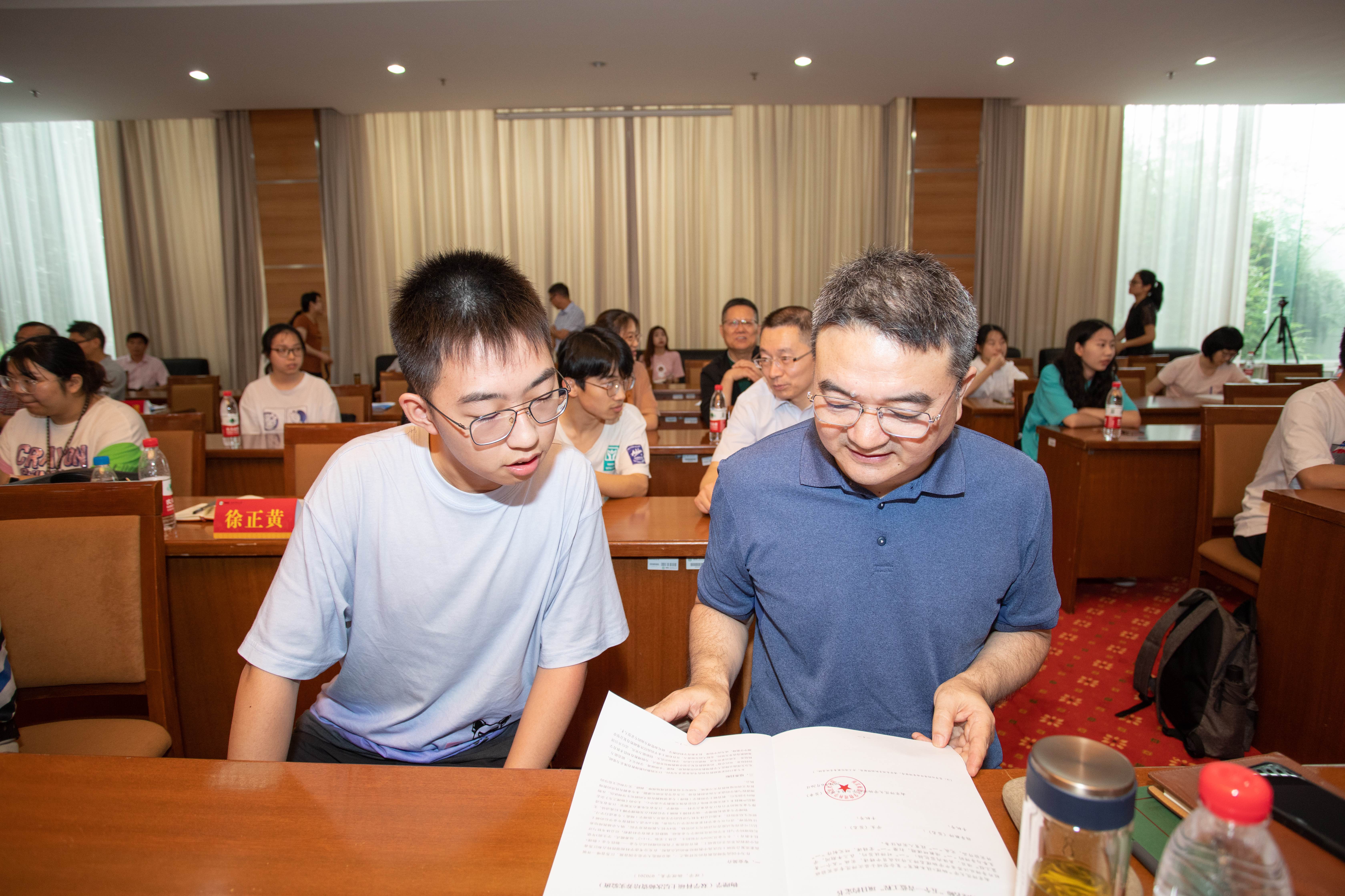 和中学物理名师联动培养的“五个一青蓝工程”项目。紧接着,在场名师与2020级实验班学生交流、沟通,签署项目约定书。最后,周海忠对本次会议进行总结,并建议名师与学生灵活利用网络进行线上沟通、远程学习交流。