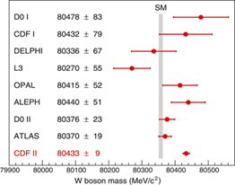 图1:目前所有测量 W 玻色子质量的实验结果总结。