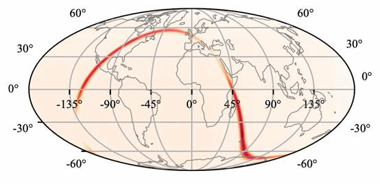 图1:双星黑洞合并信号GW151226源的天空位置。橙色表示来自NS的后验概率分布。