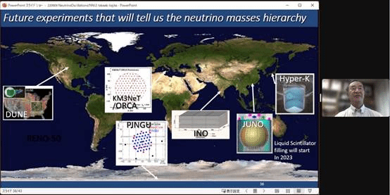 梶田隆章教授首先从日本“神冈”实验项目出发,介绍了中微子振荡有关知识。虽然“神冈”项目并未实现最初探测质子衰变的目标,但其探测器却可以接收到来自太阳的中微子。为了解决困扰科学界已久的太阳中微子缺失问题,作为“神冈”实验升级版的“超级神冈”项目很快投入了建设运行。1998年,“超级神冈”实验组发表了测量结果,给出了中微子振荡的首个确凿证据,即不同“味道”的中微子在传播过程中可以相互转换,表明了中微子本身是具有质量的,同时也解决了太阳中微子丢失之谜。这是人类历史上第一次发现粒子物理标准模型之外的新物理!讲座中,梶田隆章教授还介绍了大气中微子探测等其他重要中微子实验及相关理论研究进展。最后,梶田隆章教授还展望了中微子物理研究的未来,包括:中微子质量序、CP破坏等重要科学问题。梶田隆章教授还特别指出,中国江门中微子实验将于2023年开始运行,预期会极大推动国际中微子物理研究进展,对人类理解宇宙质量和物质起源具有重要意义。