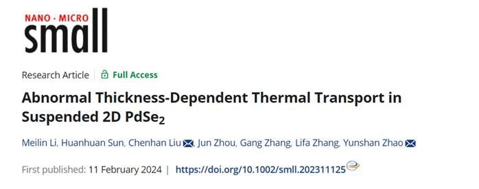 赵云山教授课题组在低维材料热导率实验测量与调控方面取得研究进展。相关结果以“Abnormal Thickness - Dependent Thermal Transport in Suspended 2D PdSe2”为题发表在国际重要期刊《Small》,期刊影响因子13.3。课题组研究生李美林,孙欢欢为论文的共同一作,网赌