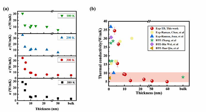 随着电子工业的发展,小型化和集成化为芯片中电子器件的高效散热带来了新的挑战。一方面某些二维材料例如石墨烯和氮化硼等,其具有高的本征热导率,被广泛认为是热管理材料的理想候选散热材料;另一方面一些二维材料虽然本身热导率较低,但是具有良好的热电性能,如:MoS2,PdSe2等,能将产生的废热有效转化为电能,为散热提供了新思路。对于二维材料,通过多种调控手段可以更加容易地对其物理性质进行调节,更好地提高器件的存储和使用性能。因此无论是从基础研究层面还是从应用层面讨论,深入研究微纳米尺度的热传导是非常有意义且必要的。