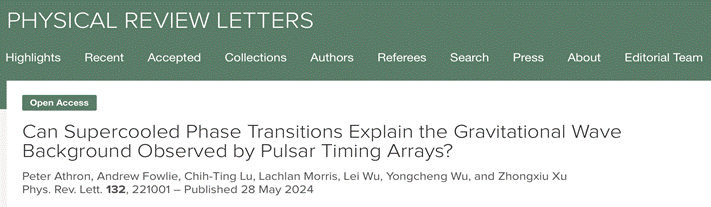 武雷教授课题组与合作者在早期宇宙相变引力波研究方面取得重要进展,相关成果以“Can Supercooled Phase Transitions Explain the Gravitational Wave Background Observed by Pulsar Timing Arrays?”为题,在国际物理学顶级期刊《Physical Review Letters》(《物理评论快报》)在线发表。