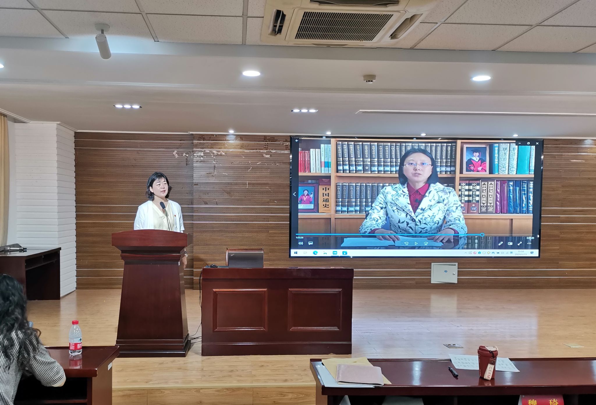 在报告中,侯晶晶老师强调南京师范大学一直秉承“弱有所扶”的教学理念,关爱残疾学生,生动诠释“笃学敏行正德厚生”的南师精神。她呼吁全体教师要以朱小蔓教授为榜样,不断提升自己的职业道德素养,以高尚的师德师风影响和感染学生。