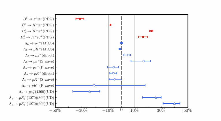 衰变过程实验数据的分析,首次观测到b重子衰变中比较小的直接CP破坏,
