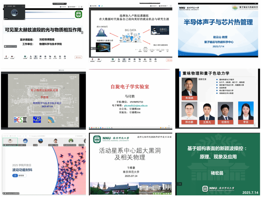 随后,学院多位资深教师依次登场,带来了一场场精彩纷呈的学术报告。杨昉老师深入解析可见至太赫兹波段光与物质的相互作用机制,卢致廷老师引领大家探秘暗世界的深邃奥妙,赵云山老师聚焦半导体声子特性与芯片热管理技术前沿,李春花老师系统介绍粒子物理领域 CMS、BelleⅡ、BESⅢ 三大实验的核心成果与科学价值,马付胜老师详解磁性材料的独特性能及其在多领域的创新应用,邢志鹏老师深入浅出阐释重味物理与量子色动力学的基础理论与研究进展,徐常清老师剖析波动功能材料的特殊物理特性与应用前景,卞维豪老师带大家走近活动星系中心超大黑洞,解读其背后蕴含的物理现象,褚宏晨老师则分享了基于结构化表面的新颖操控技术与科学突破。