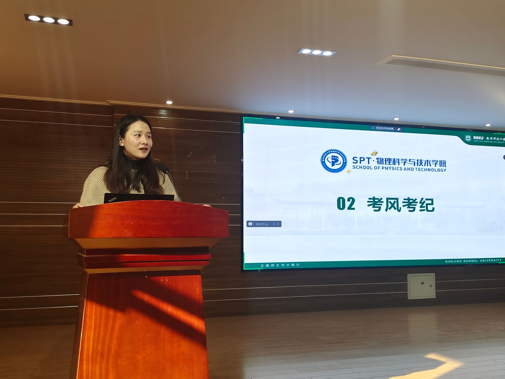 为帮助同学们积极迎接考试,做好充分准备,各年级开展了复习动员工作。24级辅导员陈老师为学生安排了高数和物理力学的答疑活动,请来了高年级学长学姐为大家释疑解惑、指点迷津。24级年级大会于12月28日召开,会上,陈老师以往年的作弊处罚案例为切入点,依照《南京师范大学本科学生违纪处分办法》逐条为大家梳理,明晰规则和红线。同时她也将考试的具体时间安排呈现给同学们,帮助大家规划好考试日程,做足考前准备。最后,陈老师提醒同学们要认真复习,专心备考,积极应对各种挑战,争取在期末考试中取得满意的成绩。