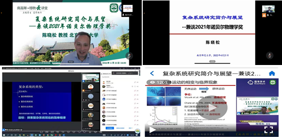 启动品牌系列讲座“南高师·格物云讲堂”,邀请国内外中青年杰出物理学家主讲。2022年4月21日,北京师范大学系统科学学院陈晓松教授在腾讯会议、寇享直播会议室开讲,作了题为“复杂系统研究简介与展望-兼谈2021年诺贝尔物理学奖”的学术报告。本次报告由网赌