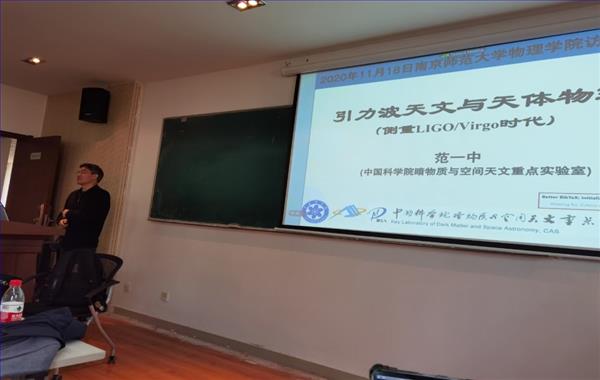的邀请,中国科学院紫金山天文台范一中教授来我校进行学术交流,并在行健楼436会议室作了题为“引力波天文与天体物理”的学术报告,相关领域的教师、研究生、本科生参与了本次学术报告会。报告会由武雷教授主持。