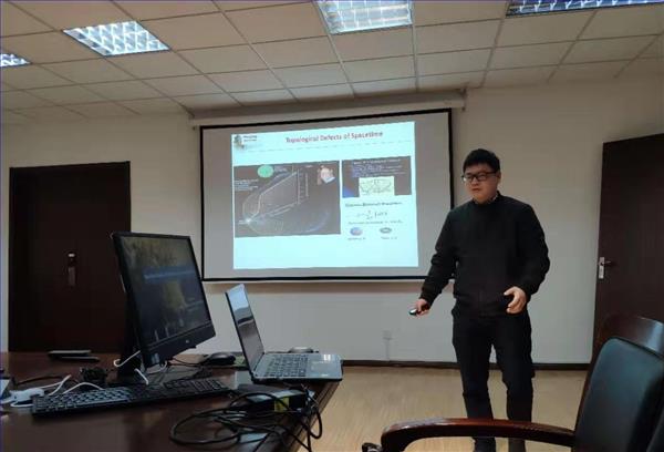 类比引力在研究广义相对论现象中起着非常重要作用。一个特别典型的例子是从费米简并液体、超导体、光学纤维、非线性晶体、离子环和玻色-爱因斯坦凝聚体中模拟霍金-昂鲁赫辐射。此外,给出了复杂非均匀介质和任意时空度量背景之间麦克斯韦方程的形式不变性,变换光学的提出和发展为研究弯曲时空提供了一种新的途径。在本次报告中,盛冲博士重点介绍他们研究小组最近的模拟广义相对论现象的实验工作,如人造黑洞,爱因斯坦环,宇宙弦等。此外,盛冲博士还提出转换光学和量子光学的结合可能在研究相对论量子信息方面有潜在的应用。报告结束后,盛冲博士对老师和同学们提出的问题进行了详细解答。