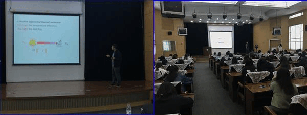 李保文教授汇报了在低维微纳体系中关于反常热传导行为的若干研究进展以及实际应用情况,介绍了三类主要的反常热传导行为:不满足傅里叶定律的热传导、热整流现象以及负微分热阻现象,相关研究成果在反常热/声子传输领域具有广泛的指导意义,为新兴领域-声子学奠定了坚实的基础。报告结束后,李保文教授对老师和同学们的提出的问题进行了详细解答。