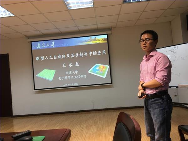 的邀请,南京大学王永磊教授来我校进行学术交流,并于4月25日下午在行健楼437会议室作了题为“人工自旋冰及其在超导异质结构器件中的应用”的学术报告,相关领域的教师和研究生参加了本次学术报告会。
