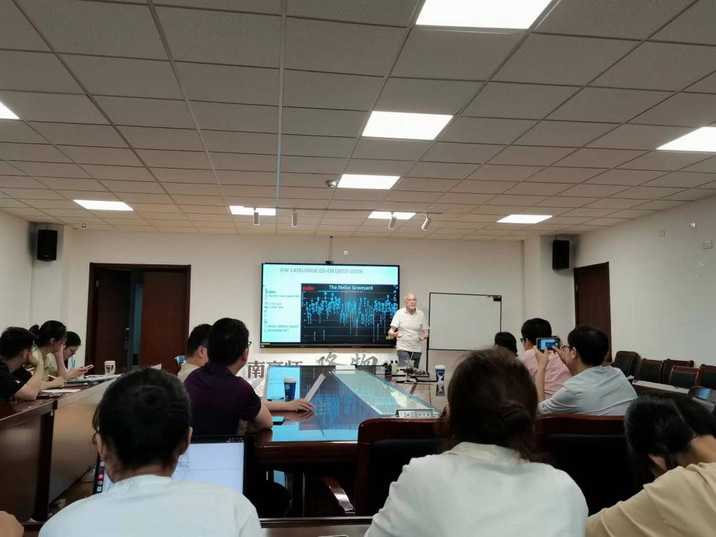 Fabio Marchesoni教授在报告中首先介绍了引力波是怎么产生的,介绍了GW150914和GW170817这两个有代表性的引力波事件,由于新一代干涉探测器(LIGO、Virgo和Kagra)灵敏度的提高,越来越多的引力波源的探测成为可能,基于此教授讲解了一些引力波探测装置的原理,展望了探测器未来在黑洞、中子星、宇宙学等方面的应用。