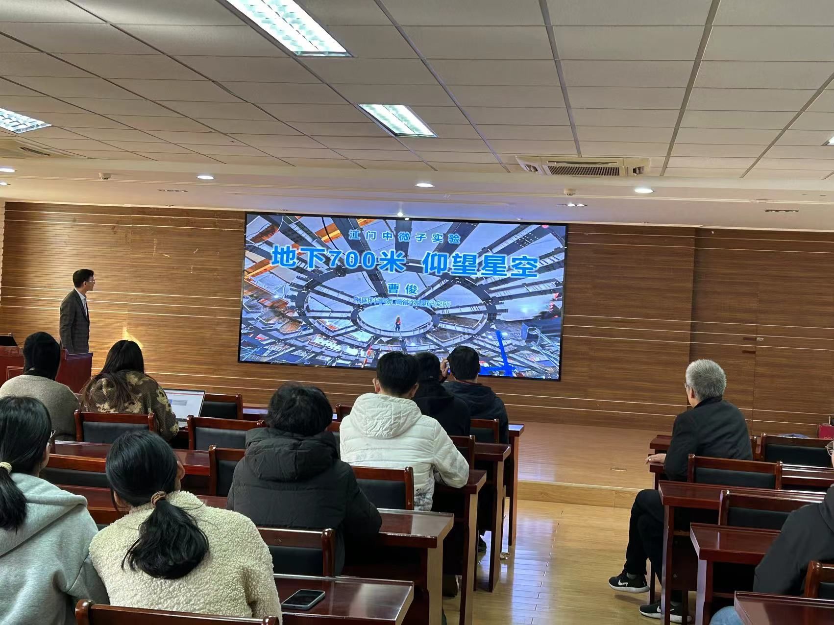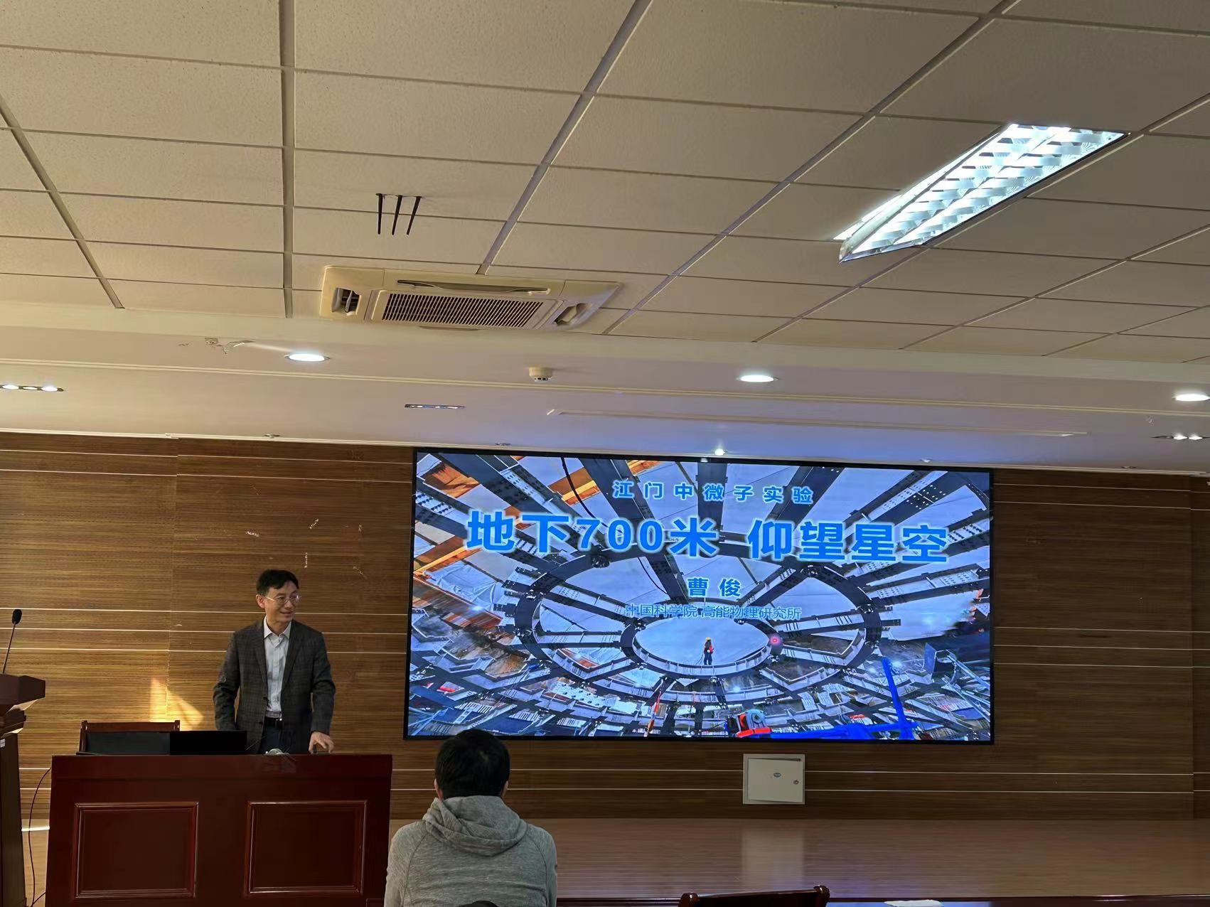最后曹研究员总结介绍了江门中微子实验,报告完毕之后,曹俊研究员对教师和学生提出的问题做出了细致的解答,在场的听众受益匪浅。