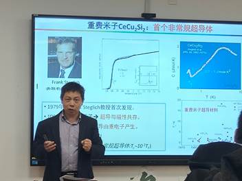 随后,袁辉球教授介绍了他们在极端条件物性研究方面的最新进展,包括磁性量子相变和非常规超导等方面,尤其是在镍基高温超导、铁基高温超导、以及重费米子超导等前沿领域做了详细介绍。