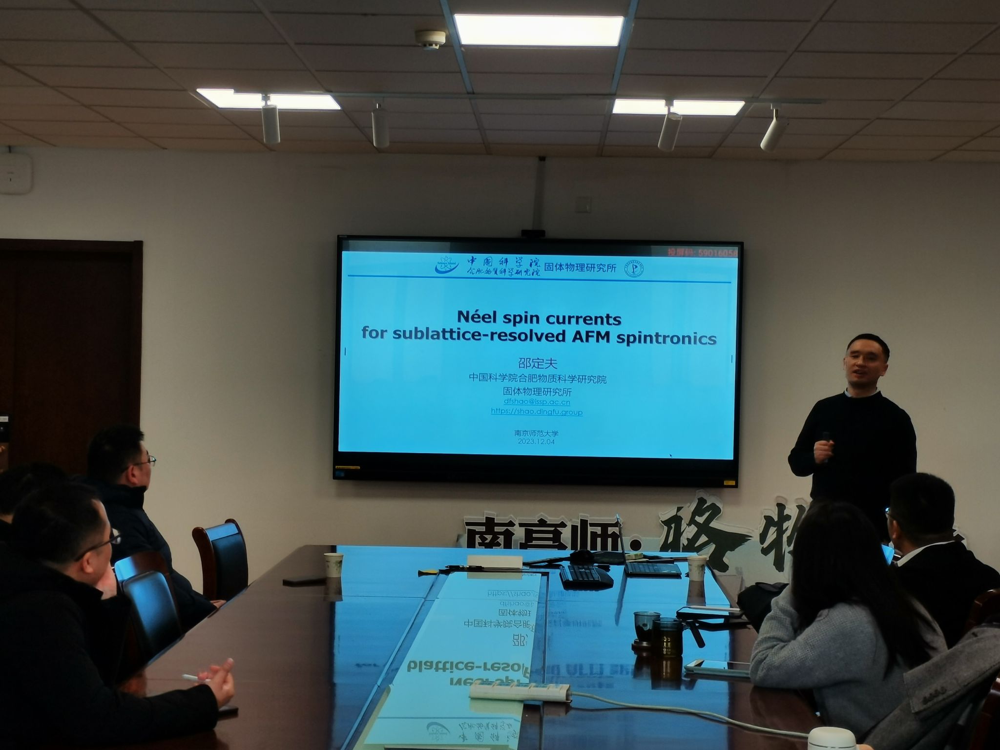 开展的品牌系列讲座【南高师·格物讲堂】邀请到了中科院合肥物质科学研究院固体物理研究所邵定夫研究员,于行健楼437作了题为“Néel Spin currents for sublattice-resolved antiferromagnetic spintronics”的学术报告。讲座由网赌