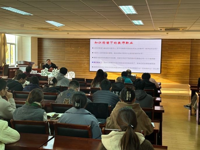 王老师作为教育部高等学校大学物理课程教学指导委员会主任委员,教育部基础教育高中物理课程标准专家组成员,为广大师生开展了“碎片与重构、知识图谱与师范教育”为主题的教育教学讲座。报告中王老师梳理了当前教育所面临的问题,以及王老师自己对这些问题的思考。尤其是考虑到,知识图谱在知识重构中的重要作用,以及对AI在教育应用中的作用。最后以虚拟教师为例,讨论了未来AI的发展对师范教育的影响。作为师范院校,同学们在会后积极提问,与王老师针对未来教育的方向、发展展开了激烈的讨论。