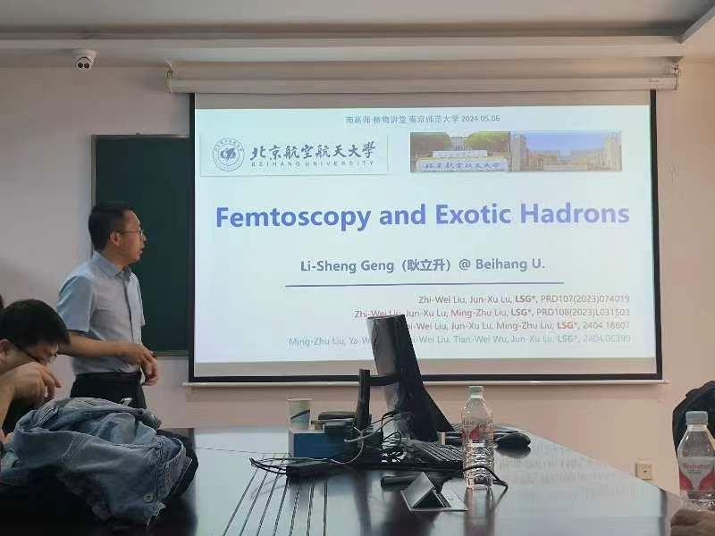 在报告的一开始,耿立升教授简要回顾了奇特强子态研究的发展历程。自2003年以来,实验上发现了许多与传统夸克模型中的qqq重子和qqbar介子不符的强子。这些强子大多位于传统强子对的阈值附近,因此被认为可能是强子分子态候选者。此外,由两个强子间相互作用对称性导致的多重态分子态、三个强子形成的三体分子态以及两个强子间相互作用(关联函数)的直接测量等,都可以为确认奇特强子态的分子态图像提供证据。