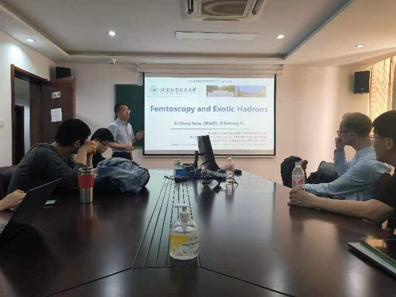 接着,耿立升教授介绍了他利用费米动量关联函数(费米镜)对强子分子态的相关研究。他以存在束缚态、共振态和虚态的情况下的动量关联函数为例,展示了动量关联函数在揭示强子间相互作用方面的普适特征。他指出可以通过测量关联函数来验证或反驳D*s0(2317)的分子态图像,区分Pc(4440)和Pc(4457)五夸克态的自旋,以及验证Zc(3900)和Zc(3985)是共振态还是虚态等奇特强子态研究的重要前沿问题。