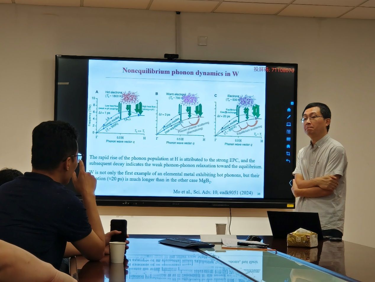 在报告结束后,老师及同学们针对金属热传导的研究方法、应用和未来发展进行了积极提问,李武教授耐心地给出了解答。同学们通过此次报告对金属中的热传导有了更深的理解,对声子热传导及电声耦合的研究有了更多的认识。