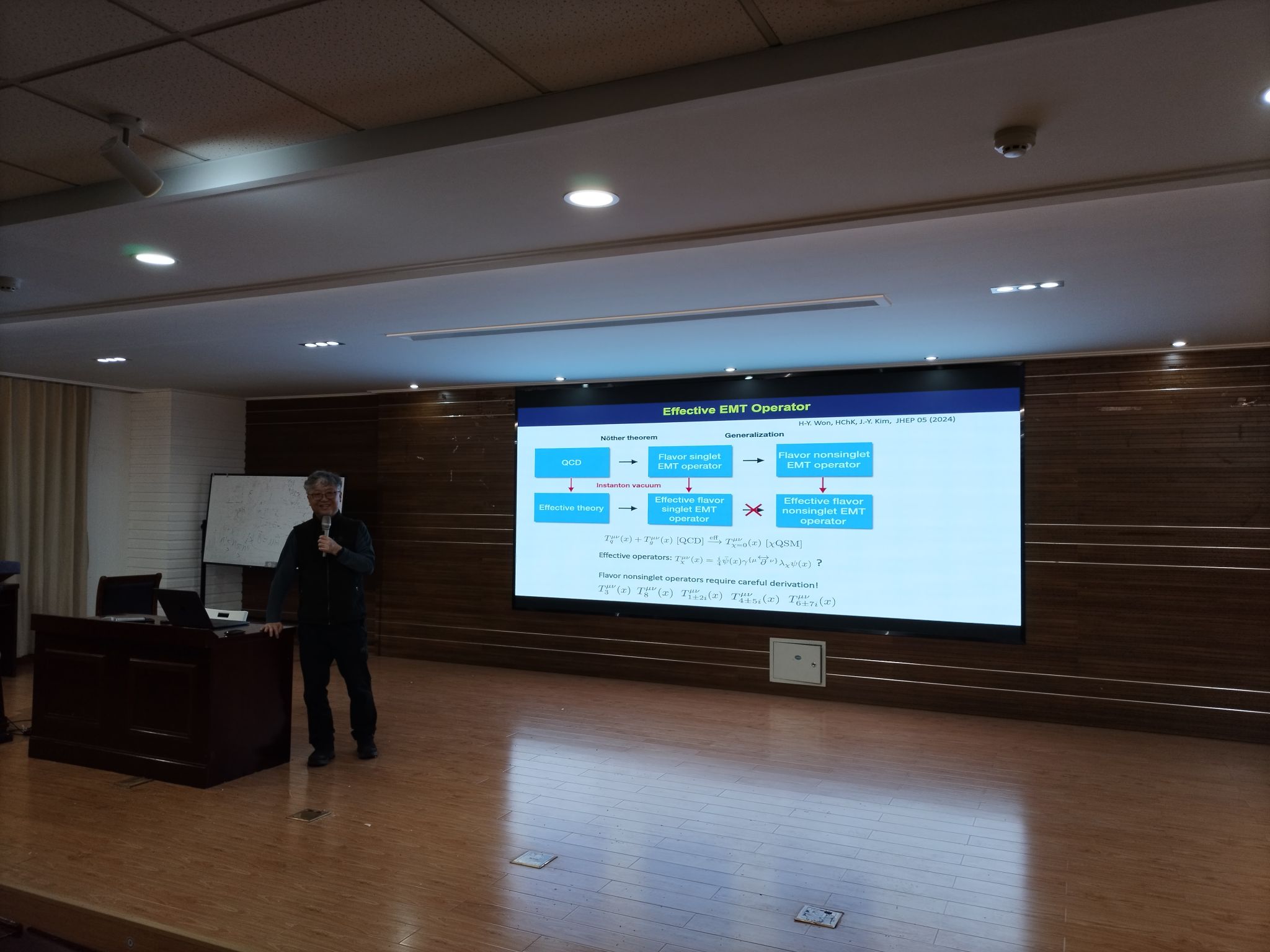 本次报告中,Kim教授介绍了手征有效理论在核子中的应用。Kim教授首先简单描述了核子结构的研究历史。其次Kim教授详细介绍了手征有效QCD理论在轻重子上的成功研究。接着Kim教授提到了电子-离子对撞机(EIC)会帮助我们找到新的胶子物理来解决非微扰QCD的困境。最后Kim教授详细介绍了各种理论上构建有效QCD算符的方法,为可视的胶子研究指出了可能的道路。