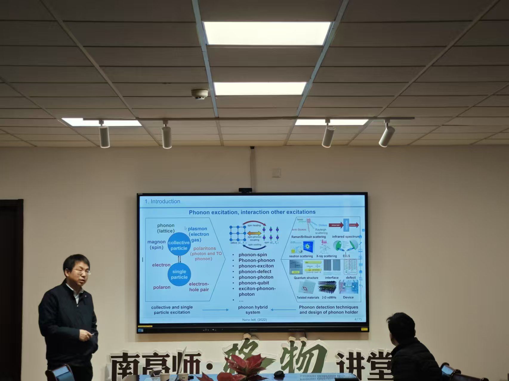 本次报告会后,参会师生与谭平恒研究员进行了讨论。这次报告不仅让同学们详细学习了关于声子-声子散射方面的知识,也让同学们了解到最前沿二维材料的发展现状和趋势。